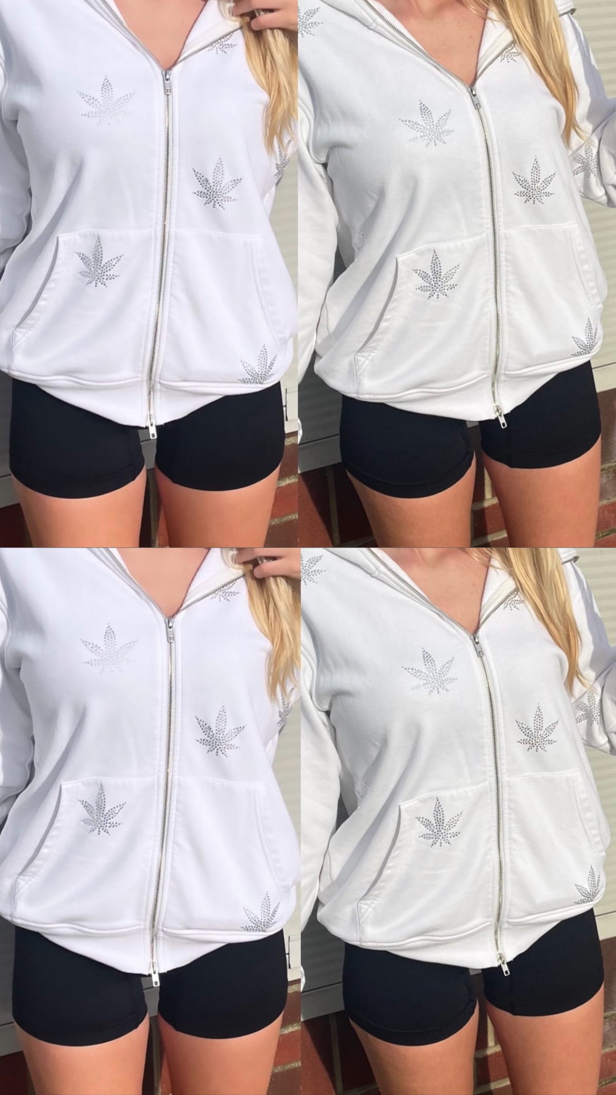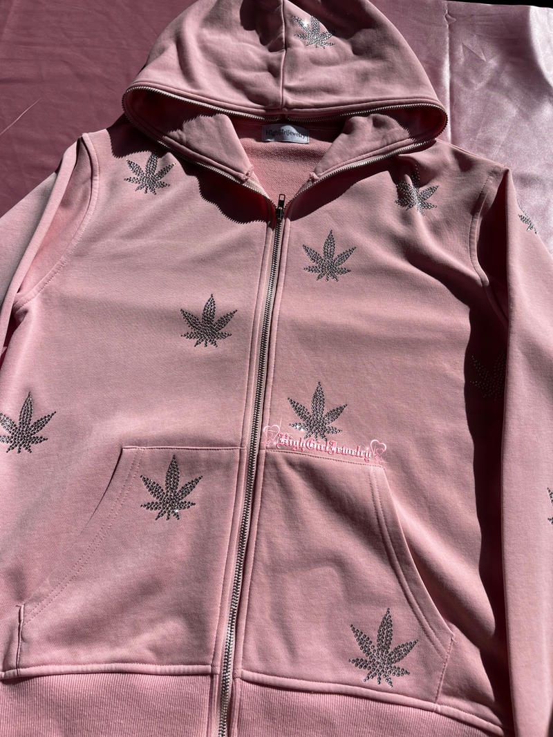 Pink Weed Rhinestone Zip Up Hoodie♡