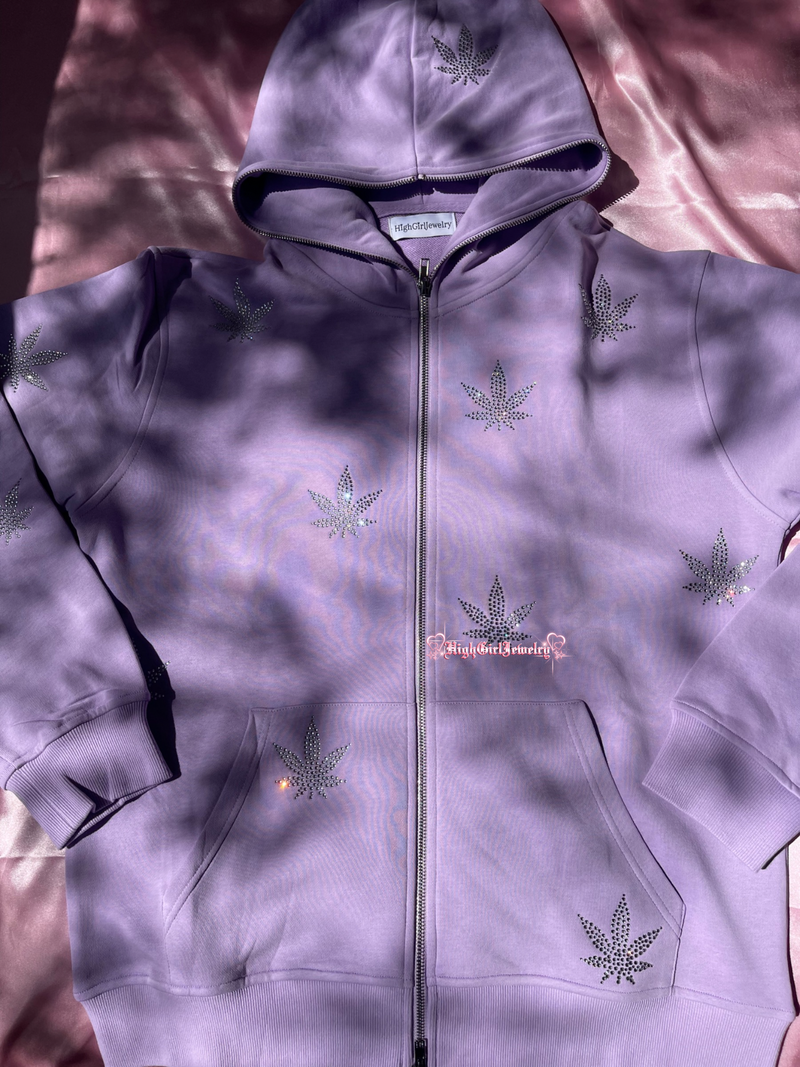 Purple Weed Rhinestone Zip Up Hoodie♡