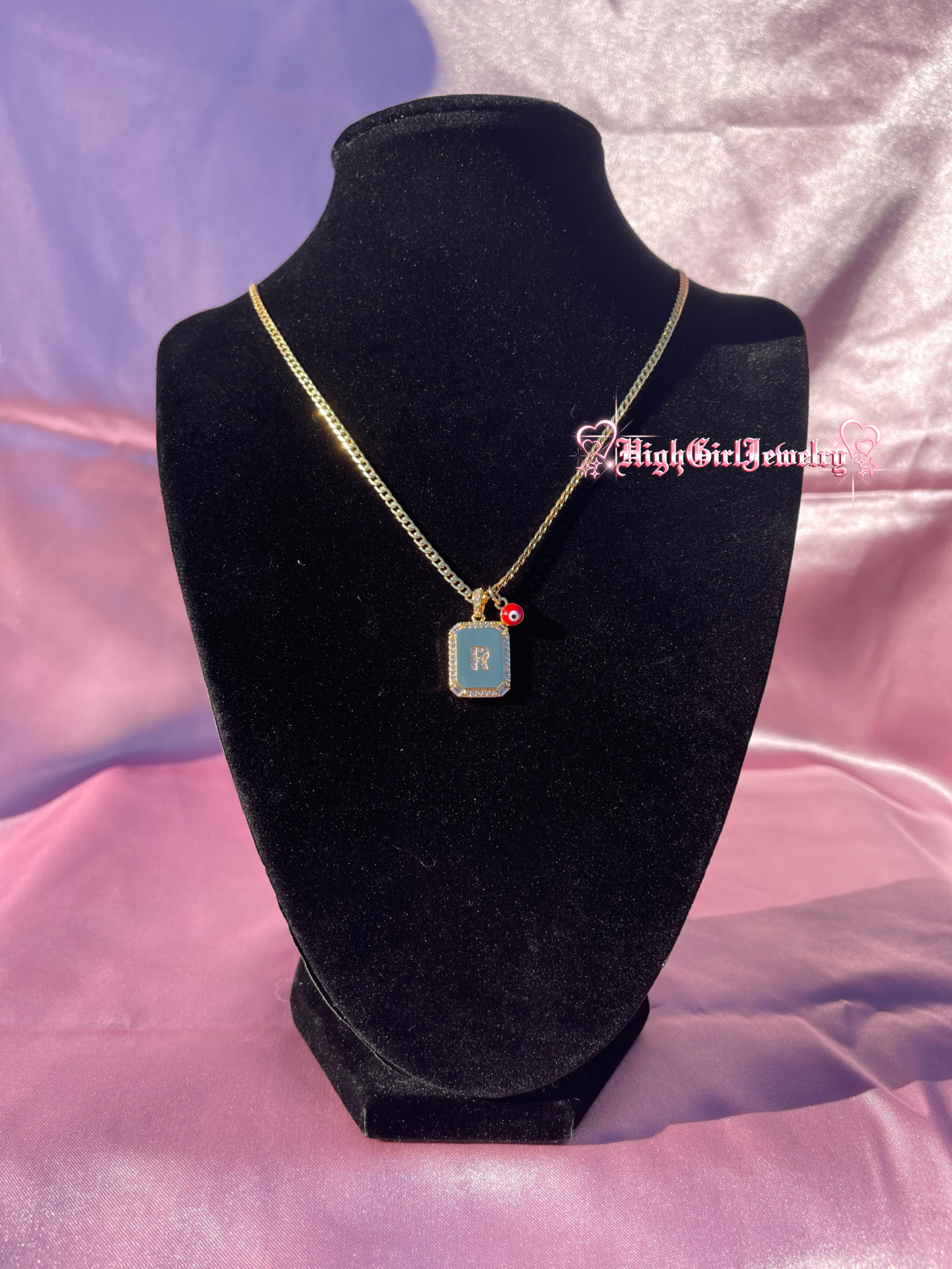 Custom Icy Initial With Red Evil Eye Necklace ♡preorder♡