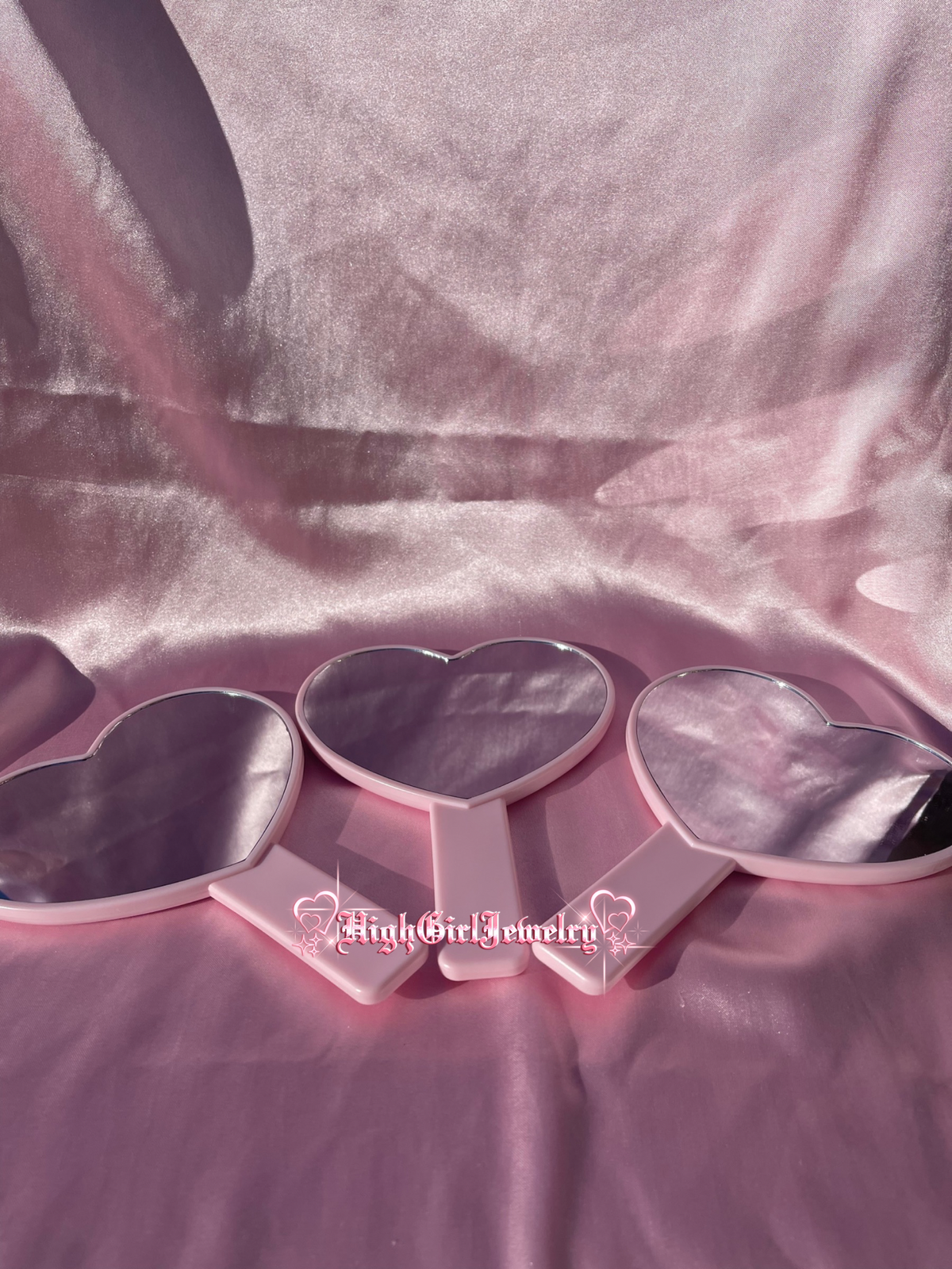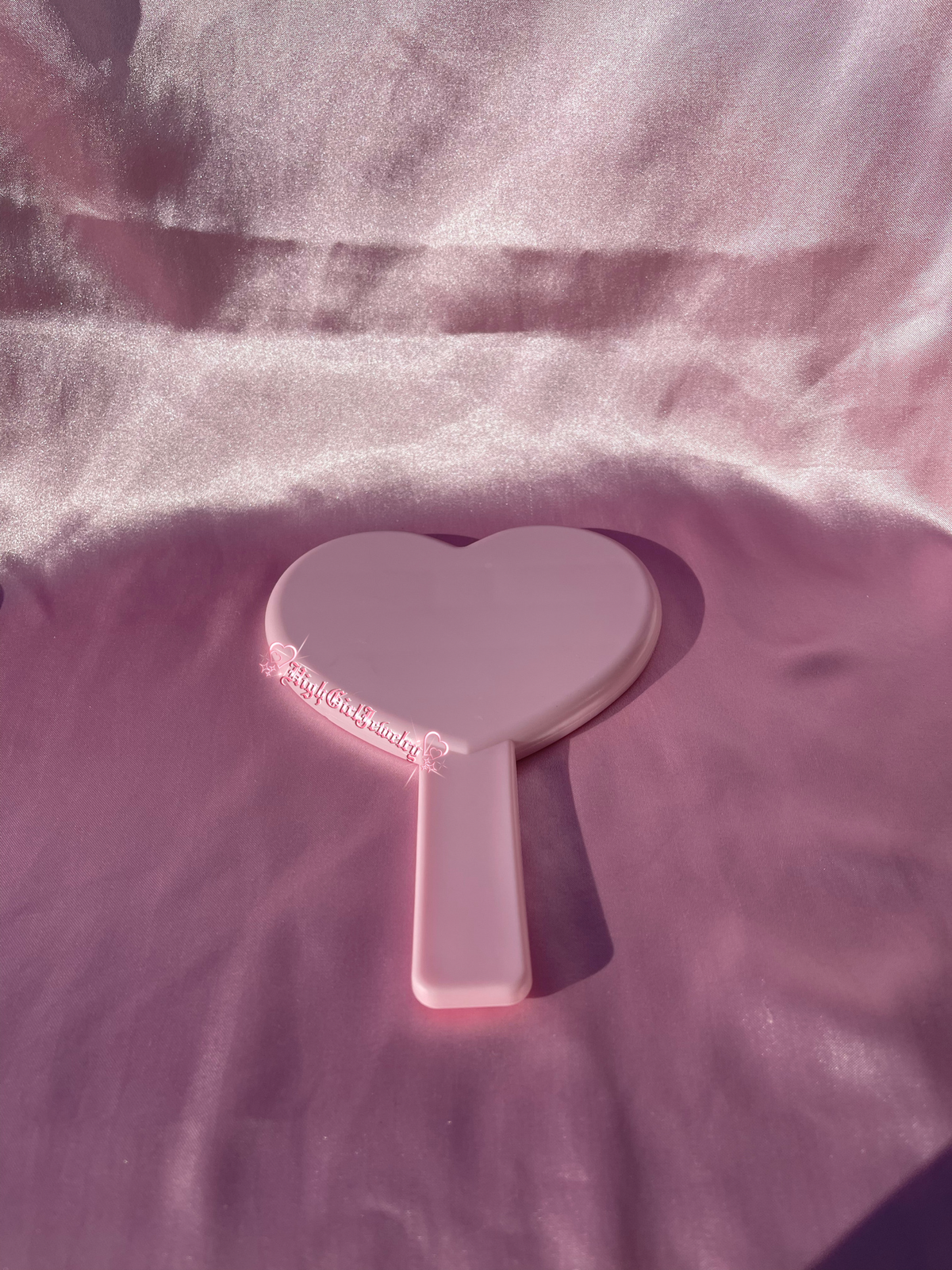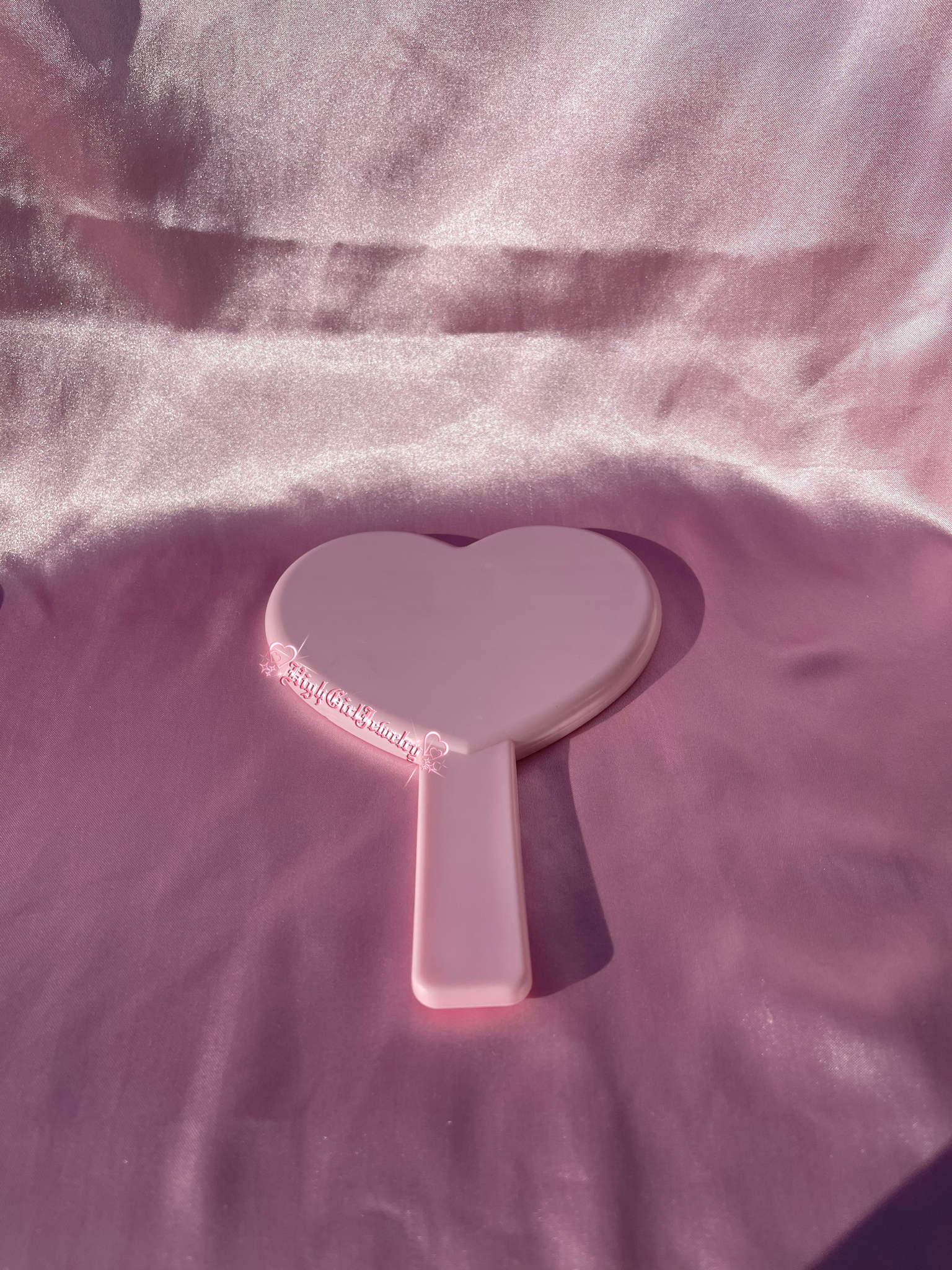 Pink Handheld Heart Shaped Mirror♡