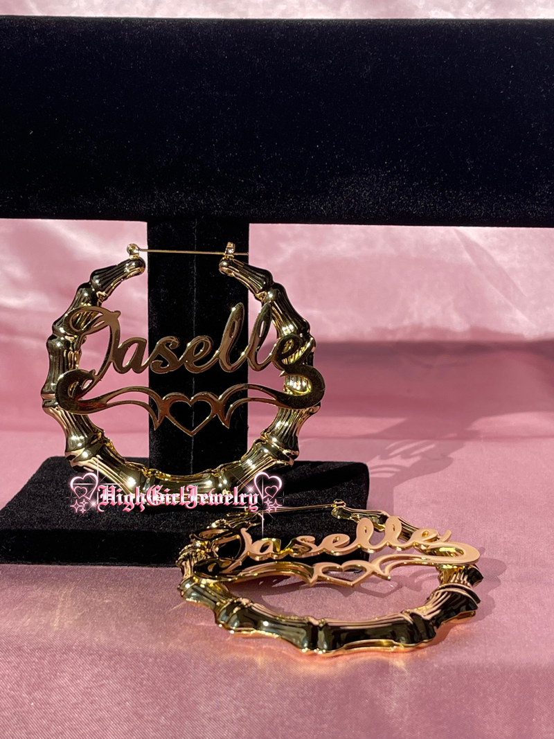 Custom Name With Heart Bamboo Hoop Earrings ♡preorder♡
